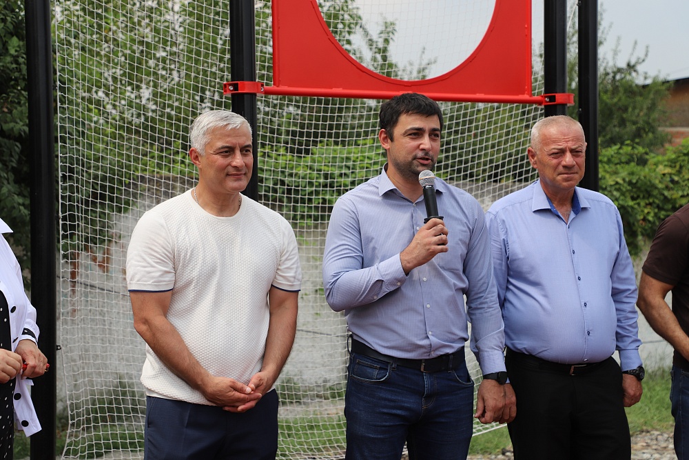 На церемонии открытия присутствовали министр физической культуры и спорта РСО-А Сослан Кочиев, председатель Комитета молодежной политики, физической культуры и спорта АМС г. Владикавказа Тимур Кубатаев, префект Промышленного района Годерзи Габараев, глава поселка Заводской Батраз Гиголаев, руководство школы.