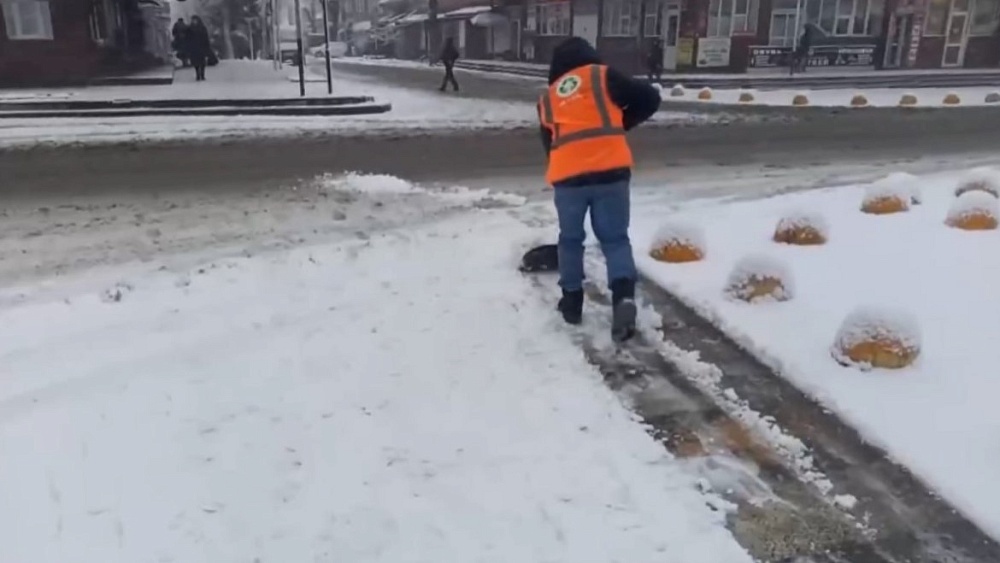 В уборке тротуаров и остановочных пунктов задействовано 11 единиц малогабаритной техники и более сотни работников ручных бригад. Работа ведется во всех районах города и будет продолжена ночью.