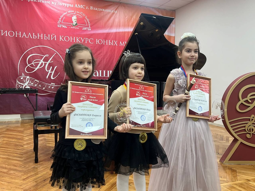 Во Владикавказе завершился ХХ Межрегиональный конкурс юных музыкантов «Наши надежды».Сегодня в ДМШ № 1 им. П. Чайковского состоялось награждение грамотами и призами лауреатов в пяти номинациях: фортепиано, духовое отделение, струнные инструменты, народные инструменты, сольное пение и эстрадный вокал.